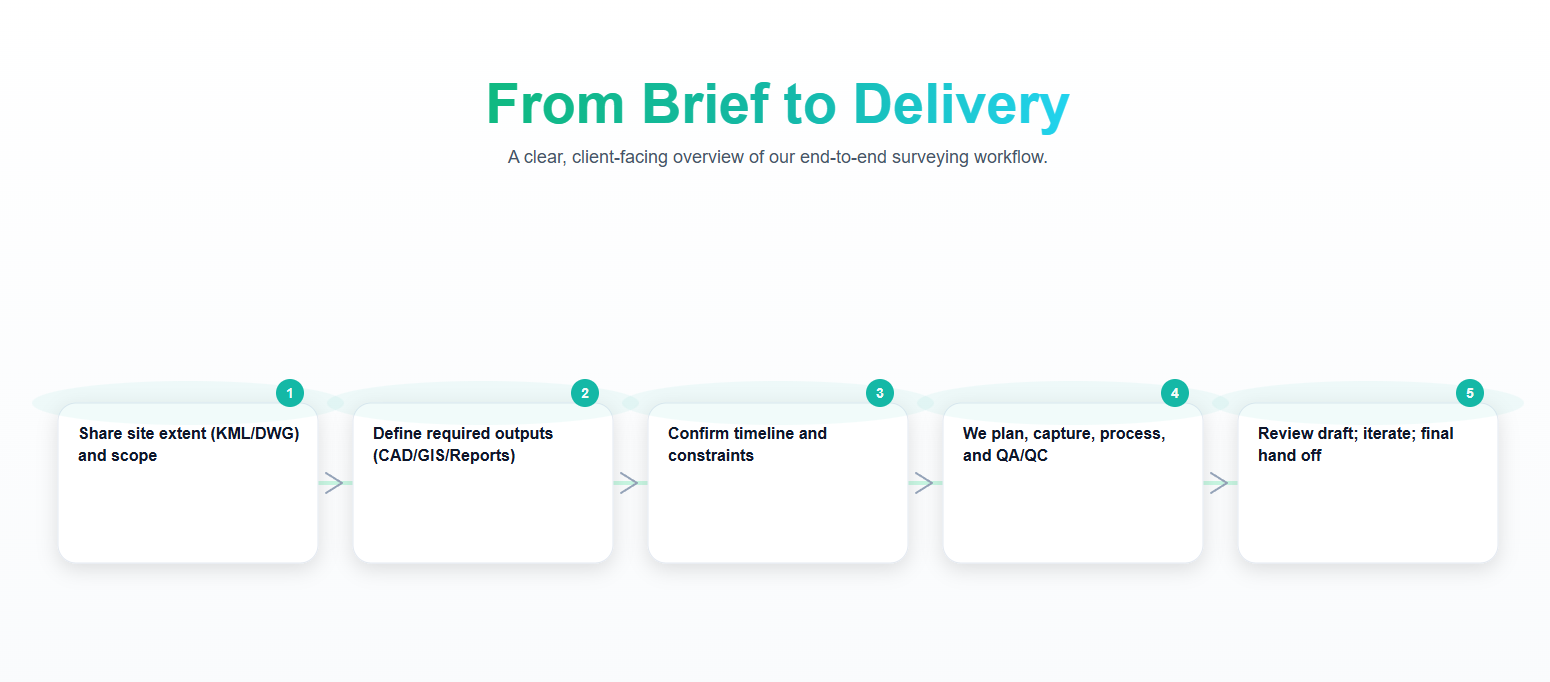 A senior survey & geospatial team manages RTK/PPK, GCPs, QA/QC, and reporting—delivering engineering-ready outputs at competitive pricing with transparent scopes and rapid turnarounds.